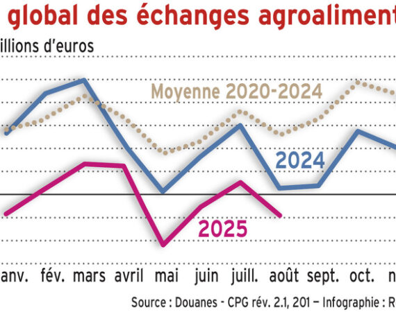 Positif depuis 1978, le solde commercial agroalimentaire français s’approche dangereusement du zéro, sous lequel il pourrait tomber dès cette année. C’est le résultat d’une longue érosion : entre 2015 et 2024, ce solde a chuté de 5,6 Md€, soit l’équivalent de 2 % des débouchés de la filière alimentaire française. Ce creusement tient en...